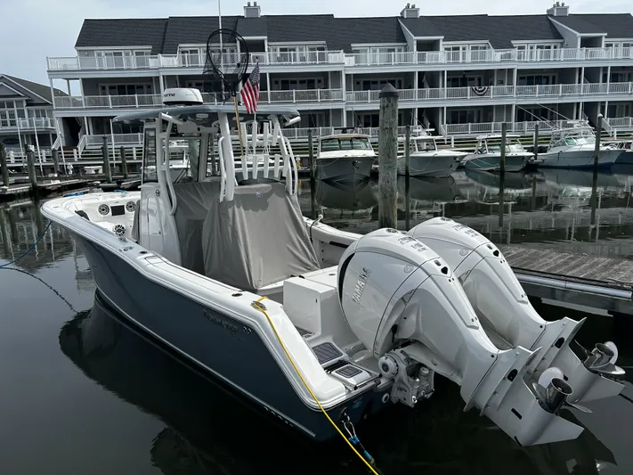 Finished in elegant Oyster Gray with white Yamaha motors, this boat stands out in both style and capability. From offshore runs to relaxed coastal cruising, it’s ready for any adventure.