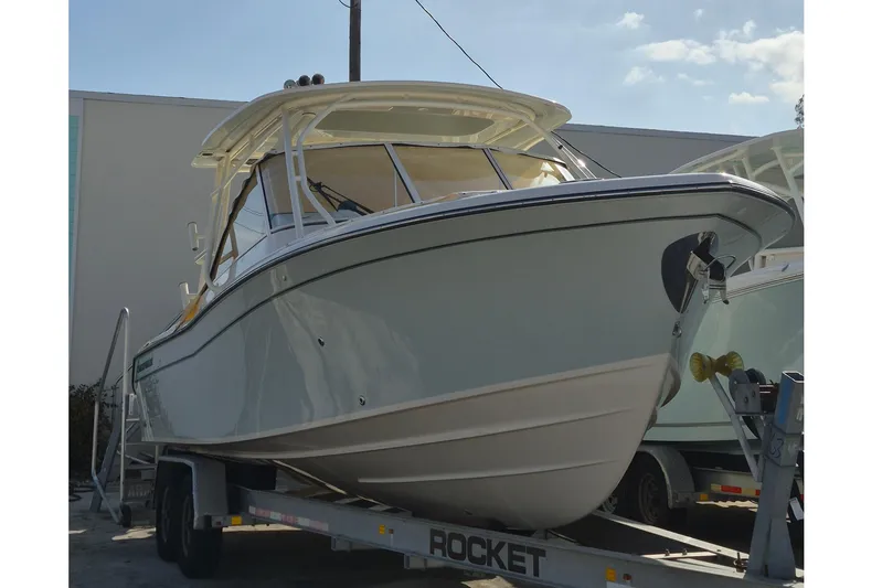 Introducing the stunning 2026 Grady-White Freedom 285, a new dual console boat that epitomizes elegance and performance. With an overall length of 28 feet, this vessel boasts a sleek fiberglass hull designed in the innovative Sea-V2(TM) shape, ensuring exceptional stability and maneuverability on the water. Powered by twin Yamaha F350 outboard engines, this boat promises thrilling adventures with reliable gasoline performance. The Freedom 285 is equipped with modern features that enhance your boating experience, including joystick control for effortless navigation. Designed for comfort and functionality, this boat offers ample space for relaxation and entertainment, making it perfect for family outings or social gatherings. The Grady-White Freedom 285 is not just a boat; it's a gateway to unforgettable memories on the water. Experience the perfect blend of style and performance with this remarkable vessel.