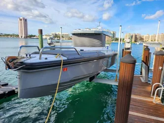 The Axopar 28 Cabin is a multifunctional craft with modern smart lines that is fully enclosable for all weather conditions yet open for warm and sunny summer days. It features a spacious, bright, and comfortable cabin with sliding doors and a large sliding canvas roof.