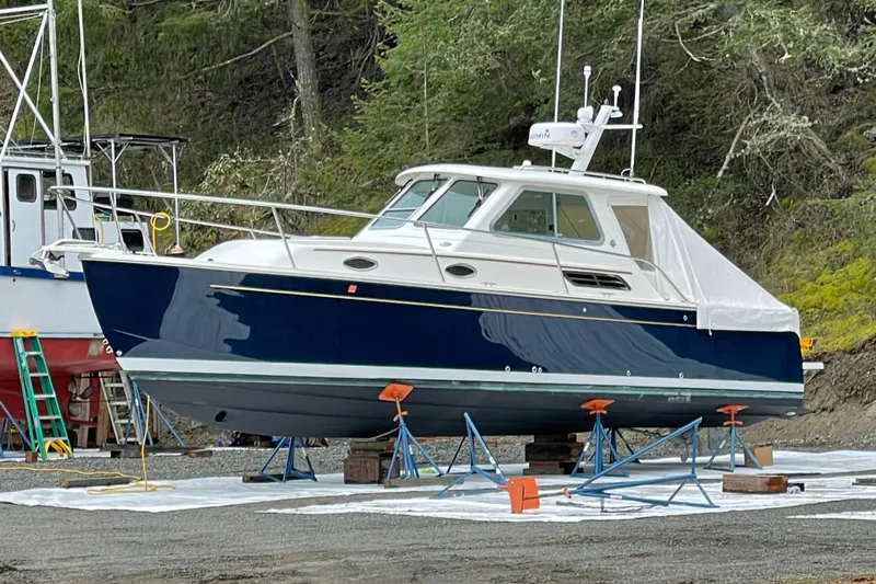 Built in Rockland Maine, USA, the Back Cove 29 is a most elegant example of everything that makes the Down East lobster boat a work of art. The Back Cove 29 has a traditional spoon bow and her transom is gently sloped. Below the surface she is modern and contemporary. A deep-vee hull with prop recess and standard trim tabs offers comfort and performance. With her optioned 315 horsepower, 6 cylinder diesel engine, she reaches a top end of 29 knots and will cruise very comfortably in the mid 20's. Around the docks, you will appreciate the enhanced maneuverability provided by her standard bow thruster and her optional stern thruster. Tui has been meticulous maintained with upgrades and care by her present owner. She is practical and beautiful and is a delight to drive and a joy to own.