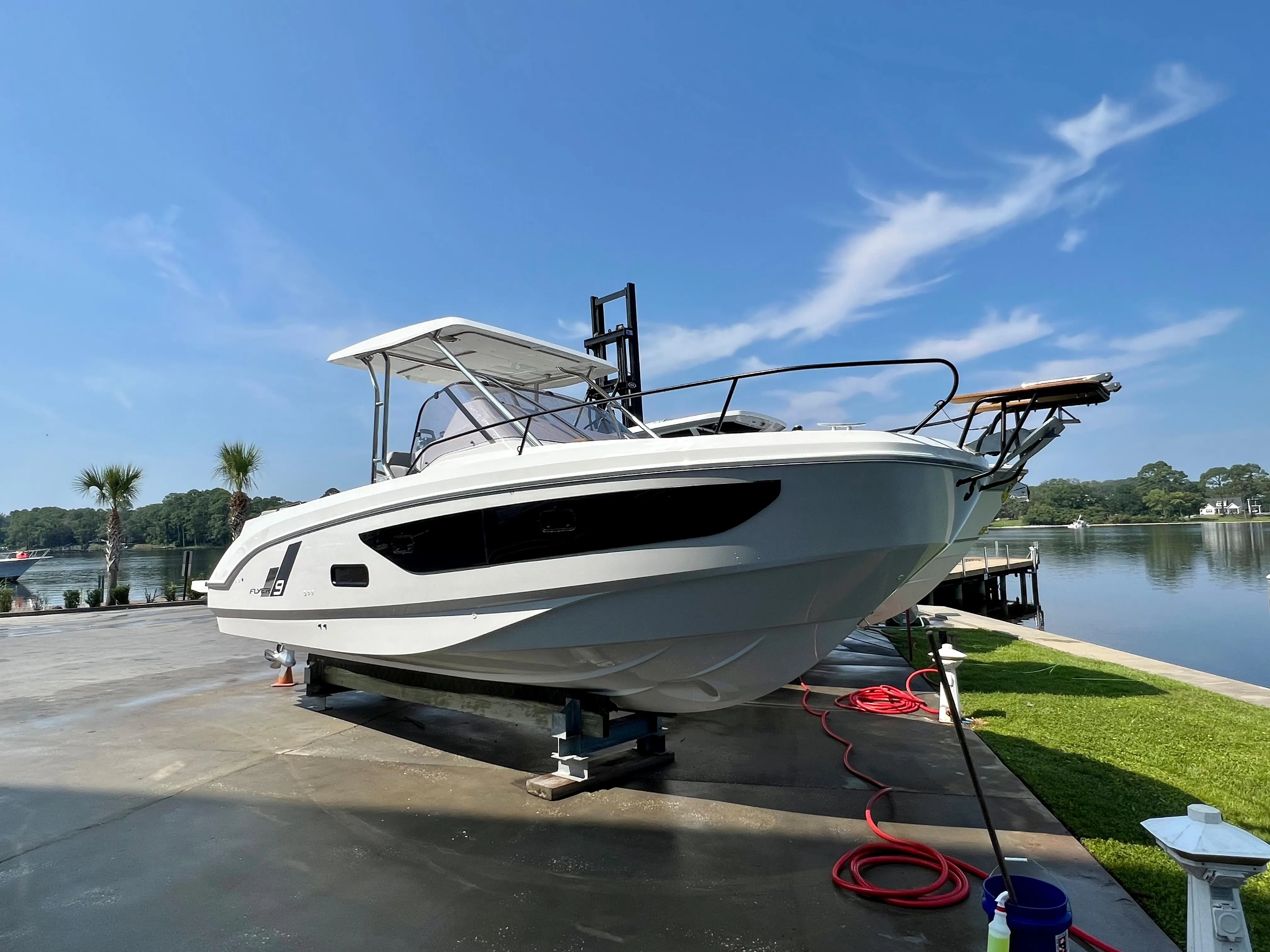 In-stock and ready for immediate delivery. Beat the tariffs and save big with this Flyer 9 that is available now! The perfect cruiser for sandbar hoping and overnighting! We accept trades and have competitive financing available.