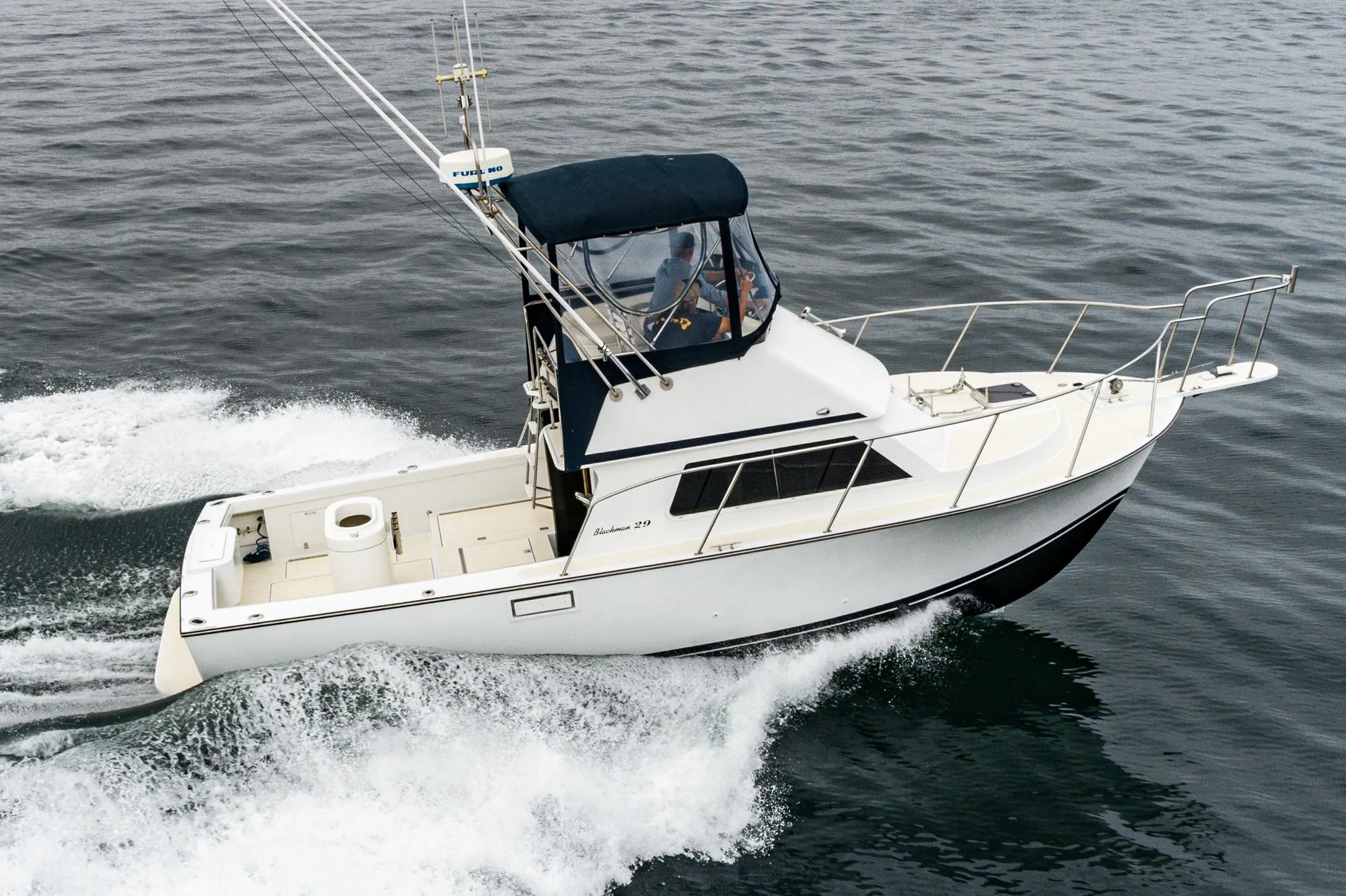 Wonderful Blackman 29 Flybridge with twin 4 Cylinder Yanmar diesels. The boat is wide and offers West Coast Railings and nice wide Walk around for bow access. This boat is one of the most sought after limited edition fly-bridge sport-fishers in her class! She is a two owner boat which has been well maintained since new, Offshore 48 gallon bait tank and built in transom bait tank gives her ample 5 scoop bait capacity. This is a Bluefin Tuna Battle-wagon with plenty of range to fish San Clemente the Tanner and Cortez on 2-3 day voyages! Loaded with New Garmin Phantom Radar GPS Plotter Auto Pilot Enclosed with new Stratoglass enclosure, Bow Pulpit, Windlass, Custom Teak Interior, All new canvas and upholstery inside and on flybridge, Head, Galley, Dual Bait Tanks and much more. Low hours, Giant Bluefin Tuna, Marlin and Mahi Mahi are here in So- Cal and this boat is Ready to Fish! New Listing More details to follow call today!