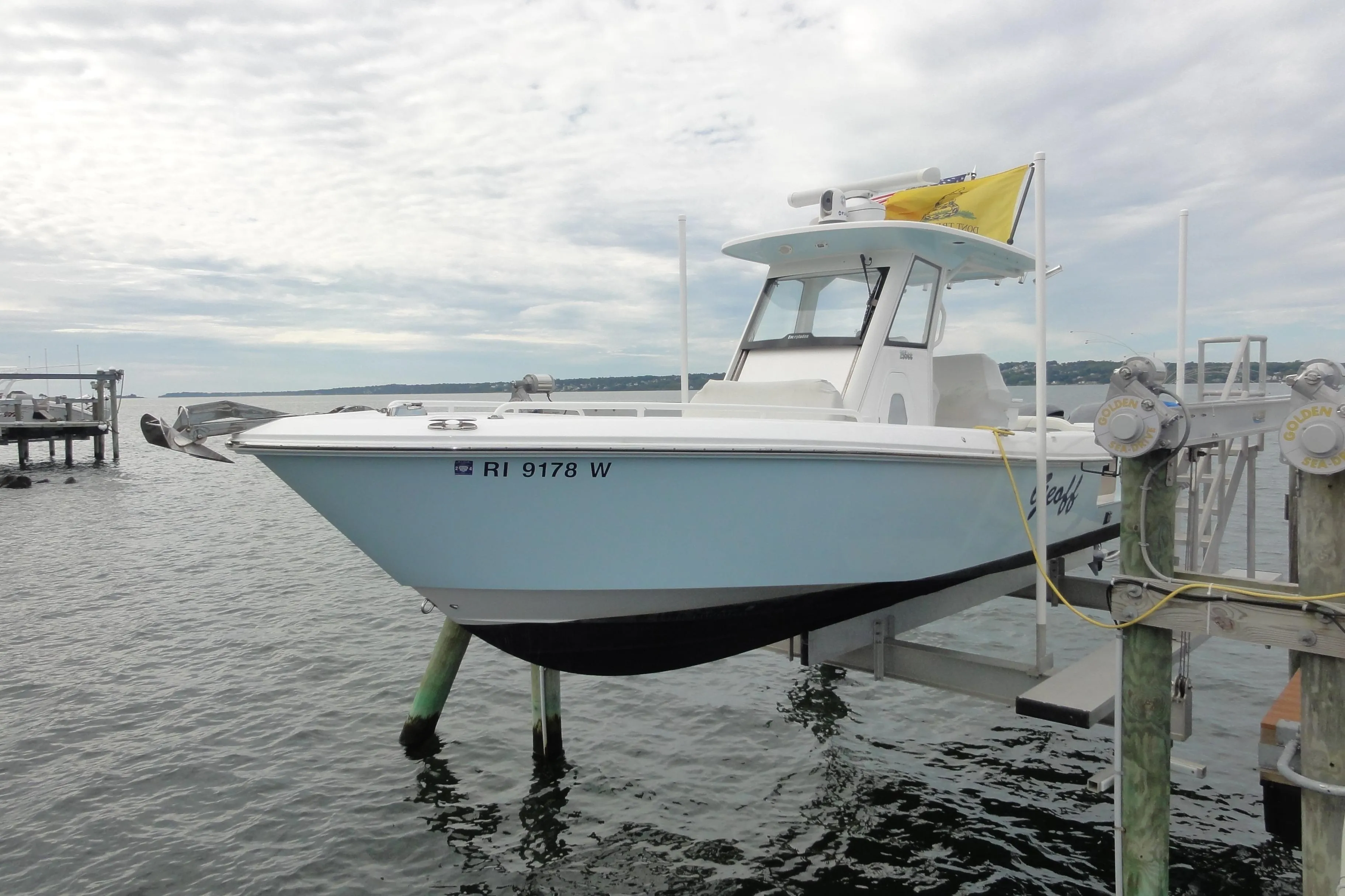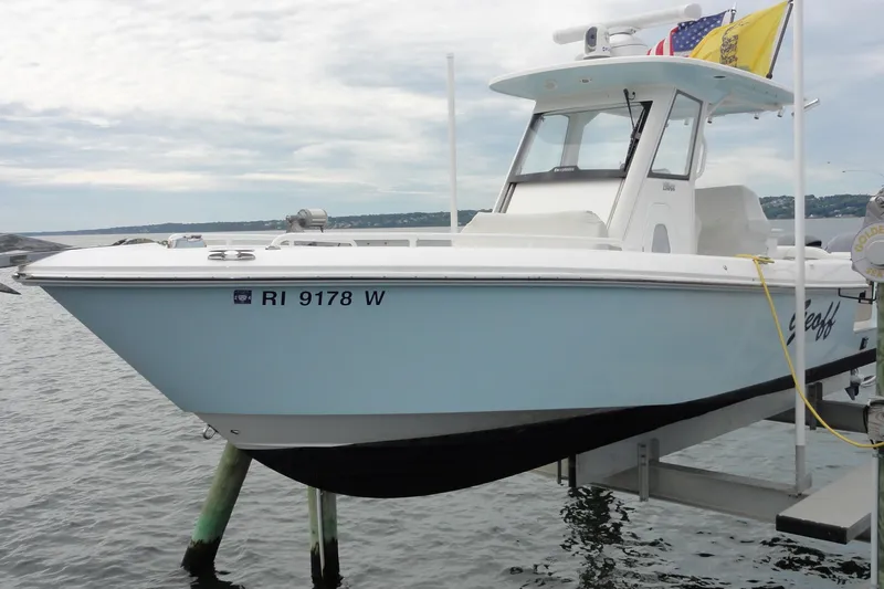 One owner, Lift kept and slightly used for pleasure and not fishing! This vessel is loaded up with equipment and ready to go! the vessel has Radar, twin screen GPS, VHF, FLIR,,windlass, seat covers, full cusion pkg not shown on vessel as kept inside house when not in use, twin Yamaha 300hp with only 215hours, canvas covers and so much more.