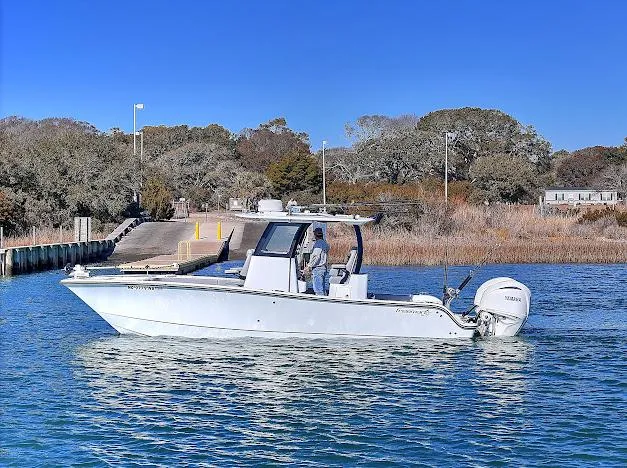 The 28 Freeman is undoubtedly the Swiss Army knife of the Freeman fleet. She is powered with twin 300 HP Yamahas that provides all the power it needs with a top speed of 69 miles per hour. Motors have 360 hours with full warranty through 9/2028. The boat is fully loaded and ready to fish or run to the local sandbars. She has been stored on a lift and is meticulously cleaned after each boating adventure.