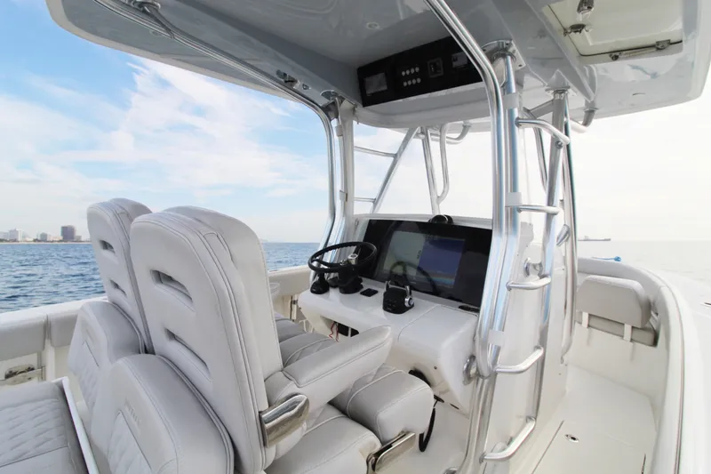 This excellently maintained Jupiter 30HFS is the nicest on the market. Originally build as a tender this Jupiter 30 HFS has almost every option available added, as well as many full custom features, such as, a factory installed Seakeeper 2 and side dive door. This Jupiter 30HFS came from the factory fully loaded with a tower setup, 8622 Garmin Screen, Tow Eye, Helm Master, and a factory installed Seakeeper 2!