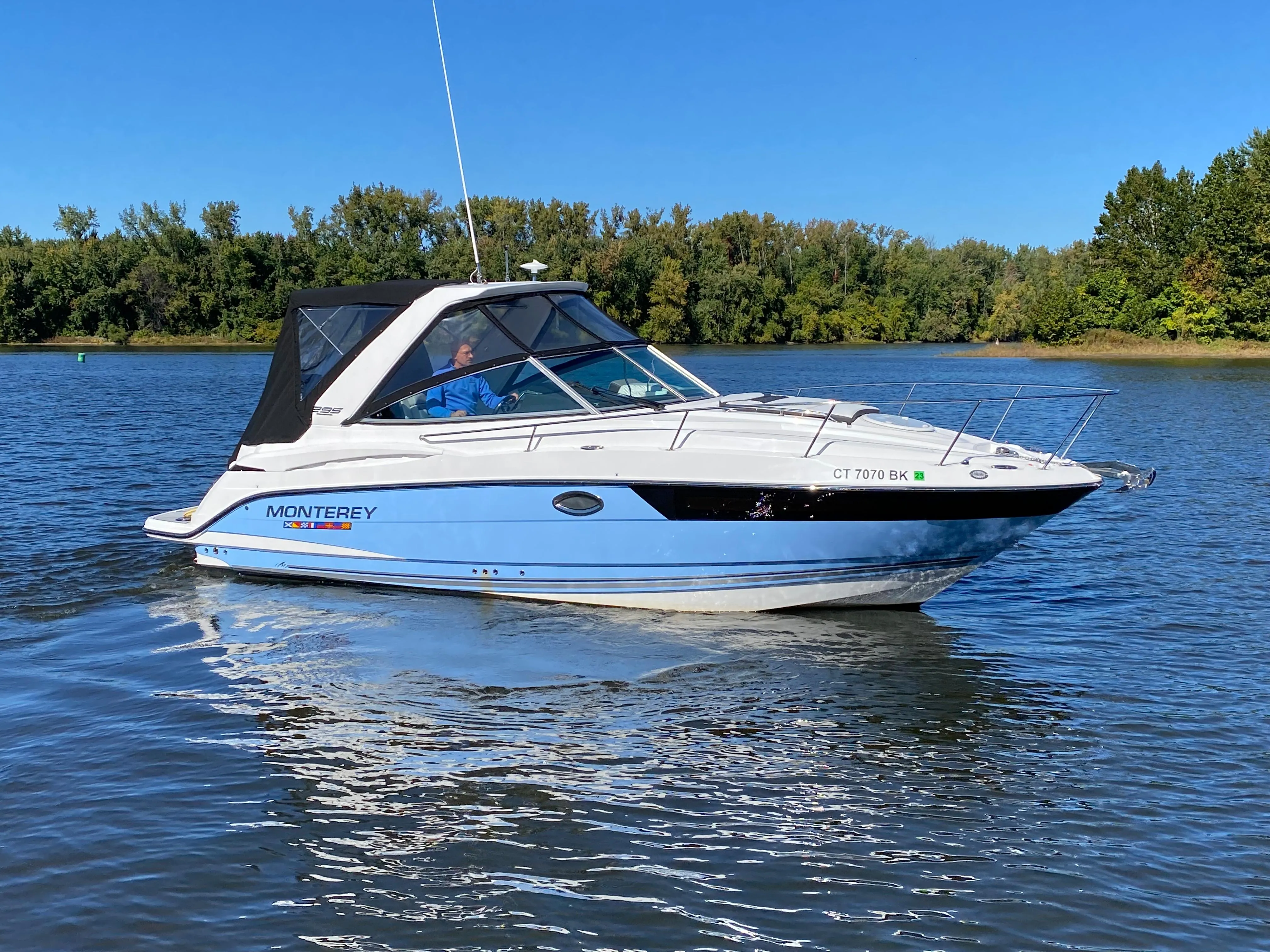 This spectacular 2022 295 Sport Yacht is in excellent condition, spotless & barely used, and loaded with options. In the water and ready for her new owner to take her home - no waiting! This is a beautiful must-see boat! Plenty of “big boat” options including: Mercruiser 8.2 MAG MPI CAT DTS, with Bravo 3 Outdrive, Bow Thruster, Seadek Inlay throughout Swim Platform and Cockpit, Cockpit Refrigerator & Wet Bar, 2 Berths, Head/Shower combo, Underwater LED lights, Stainless Steel Windlass Anchor, Active Trim, Ray Marine 90VHF, GPS AX9/ChartPlotter, LED 19’ Flat Screen TV & DVD Player, Solid Wood Dinette Table, AC with Reverse Cycle Heat, Cockpit Grill, Transom hot/cold shower, Full Canvas, Remaining Warranties and much more … This is the perfect family or couples cruiser, small enough to be easily managed yet large enough to go places and stay overnight. Very nicely appointed and comfortable both inside and out. No disappointments on this beautiful boat – must be seen to be fully appreciated.
