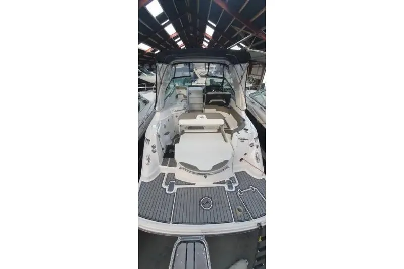 Monterey Boats inspects each boat throughout the manufacturing process and completes a thorough systems, fit, and finish check before the boat leaves the factory ensuring premium build quality. The Monterey 295 Sport Yacht is designed to blend sporty performance with cruiser comfort, featuring an enclosed cockpit with glass windows, versatile cockpit seating, and a well-appointed cabin with smart use of space for weekends on the water.