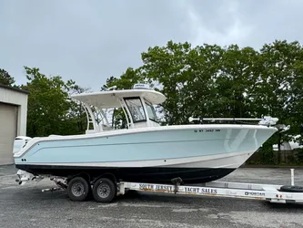 Experience unmatched versatility and performance with this tricked-out 2018 Robalo R302 Center Console - A serious fishing machine with family-friendly features and all the bells and whistles of a 40' Sportfish. Powered by custom white-painted Yamaha 300's (under 500 hours), this rig delivers phenomenal performance and a smooth, dry ride thanks to Robalo's Kevlar-reinforced hull.