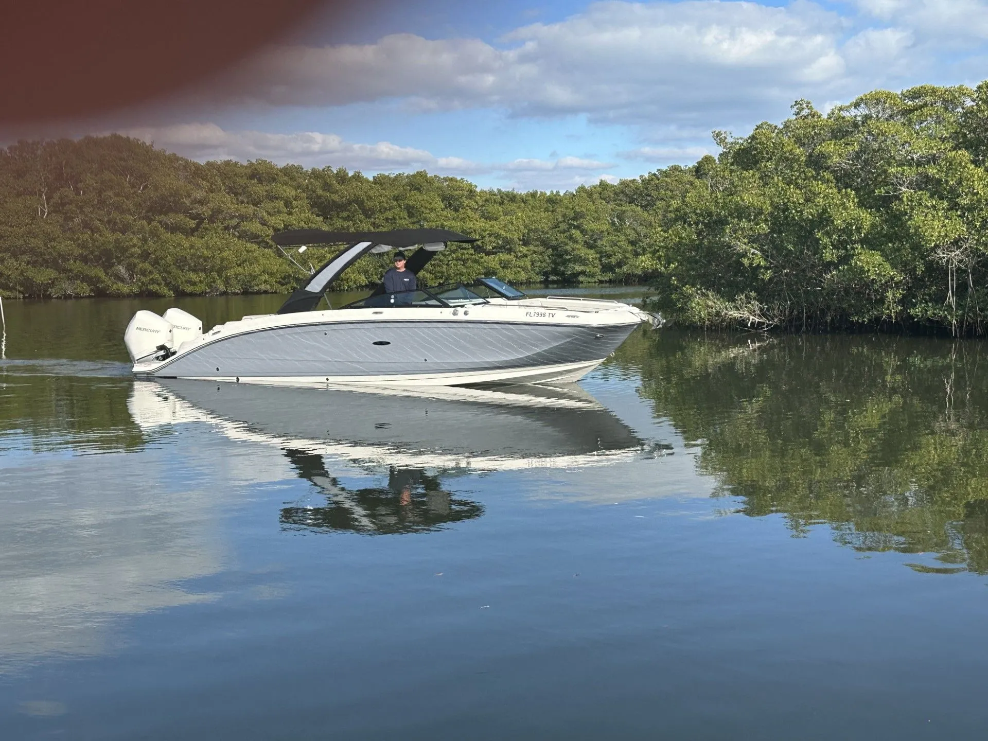 Twin White Mercury 250HP JPO Verado's with 90 hours. Simrad color Plotter/Depth finder Horizon Hull sides, Grey Flooring, Sea deck flooring in cockpit and swim platform, Stone cockpit, Transom Sunpad, Blue LED lighting package, Black Sports Tower w/Bimini, Blue Underwater lighting, Windlass, Vacuum Head sytem holding tank, Shore Power package, Upgraded stereo with JL Audio tower mounted speakers(4), Cockpit/Taneau canvas covers and Head interior upgrade. Vessel is attractively priced at $224,900. Contact Scott St. Angelo at our Clearwater location for a showing.
