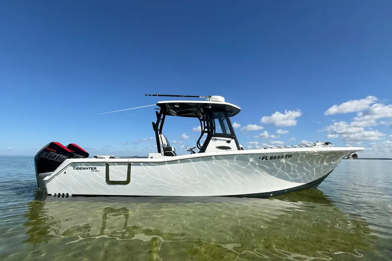 Specifications • Year: 2022 • Make/Model: Tidewater 292CC • Length: 29’ 2” • Beam: 9’ 8” • Power: Twin Mercury 300 outboards with 258 hours on each engine. • Hull: 2-tone Shark Skin bottom / White topsides