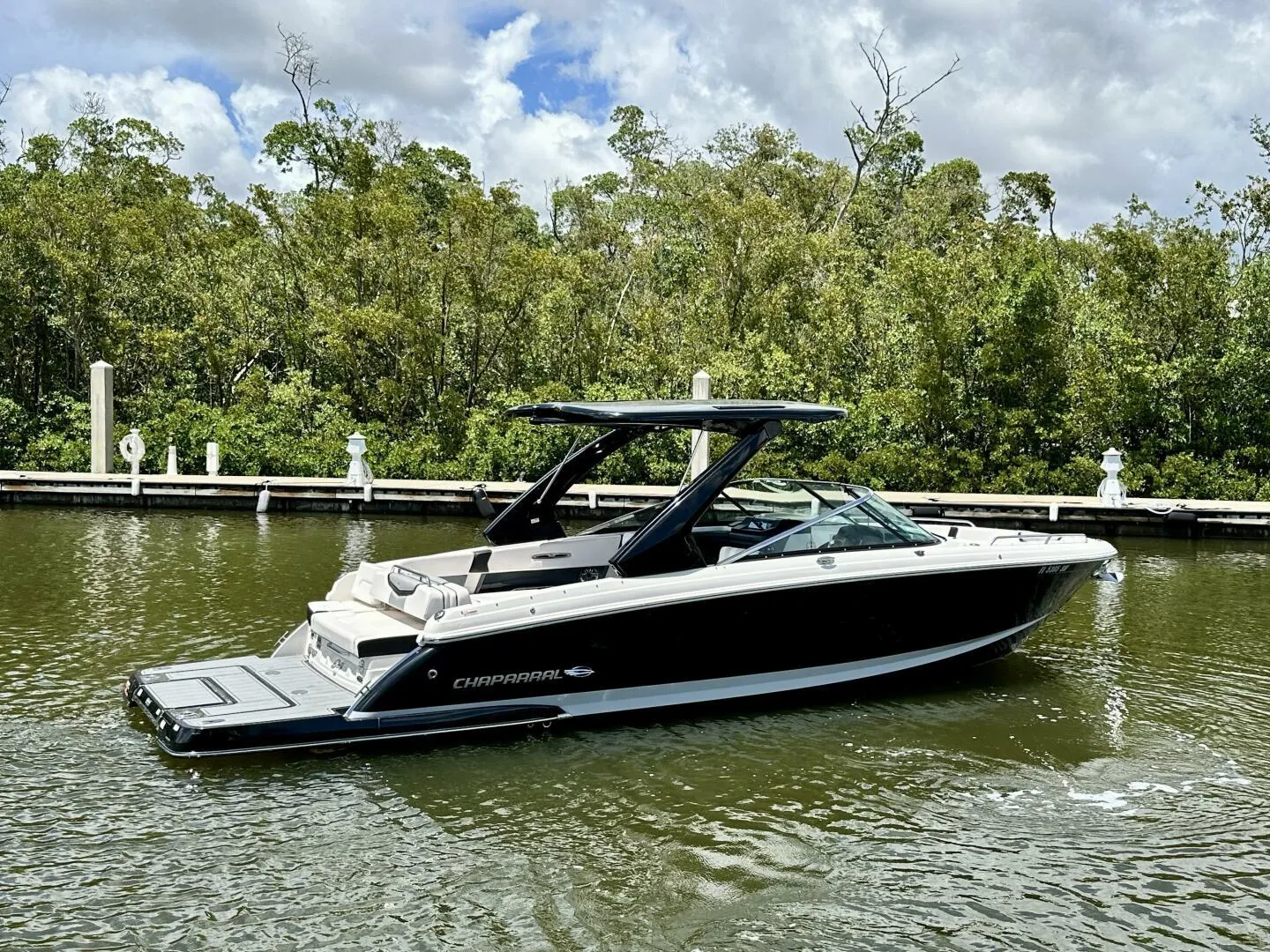 This 2021 Chaparral 307SSX presents an incredible opportunity to buy a nicely equipped, light-use, single owner vessel along with an indoor dry-rack slip at the prestigious Hamilton Harbor Yacht Club in Naples, FL. This 307SSX is optioned with everything you'll need to enjoy a comfortable day on the water with the whole family. Her Mercury 8.2L engine provides great performance, and her bow thruster allows for effortless maneuvering and docking. She is also equipped with an electric folding hardtop to decrease overall height at the touch of a button.
