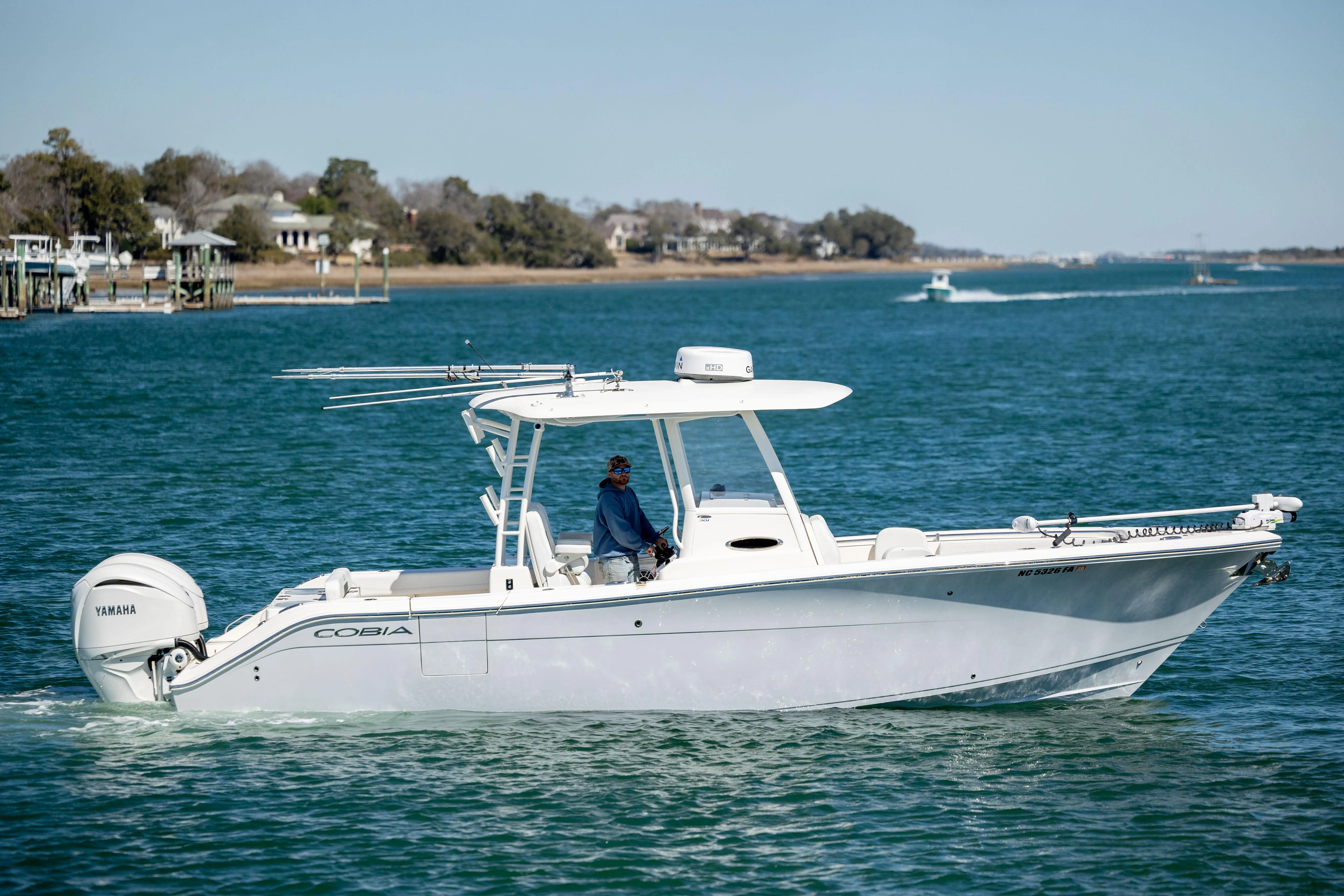 The Cobia 301 CC has everything that made its predecessor the 296 CC the top selling 30 footer in the country, but so much more. Take for instance an inward opening side door for hauling aboard the big ones, easy entering and exiting while diving, and dockside boarding. In addition, there’s added space in the cockpit, and the tackle station now has a freshwater sink and rigging station. A new console situates all operational controls and screens perfectly to maximize form and function, and the dash can be stylishly color-matched to the hull. Combine all this with popular features like the electric bow table and the hull’s silky smooth ride and the 301 CC is sure to be the next Cobia that stands atop its class.