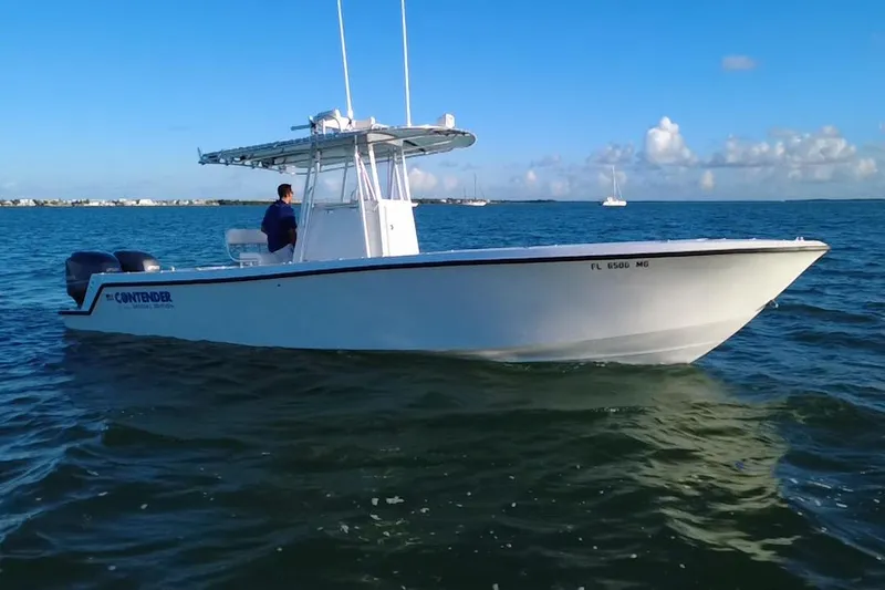 This 2003 Contender 27 open is a must see. Boat has been well taken care of and constantly kept up to date. Boat was originally built for Caribee boat sales in the Keys as a special edition model with many unique features. Boat is completely Ice blue HULL-DECK-CONSOLE and COMPARTMENTS. Boat was repowered in 2017 to with twin Yamaha 250s has about 470 +/-. Non skid was done 2015 owner glassed in all the deck screws and gave her and updated look like the newer T models.