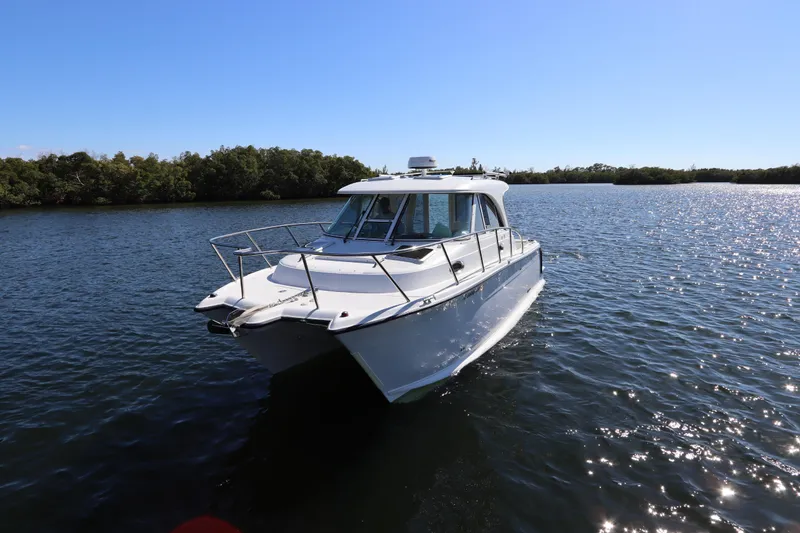 Introducing the 2008 Glacier Bay 3080 Coastal Runner with the Alaska Package enclosed cockpit and hardback, a remarkable saltwater fishing vessel that combines performance and comfort. With an overall length of 32'1", this catamaran features a durable fiberglass hull designed for stability and efficiency on the water. Powered by twin Yamaha outboard engines, each delivering 250 horsepower, it promises an exhilarating experience. This boat accommodates one cabin, one head, and a fully enclosed climate controlled helm station, ensuring comfort during your fishing adventures. The electric windlass adds convenience, making anchoring effortless. With a seating capacity for six, it’s perfect for family outings or fishing trips with friends. The Glacier Bay 3080 Coastal Runner is a well-maintained, used vessel that offers a blend of reliability and performance, making it an excellent choice for avid anglers and leisure seekers alike. Experience the thrill of the open water with this exceptional boat!