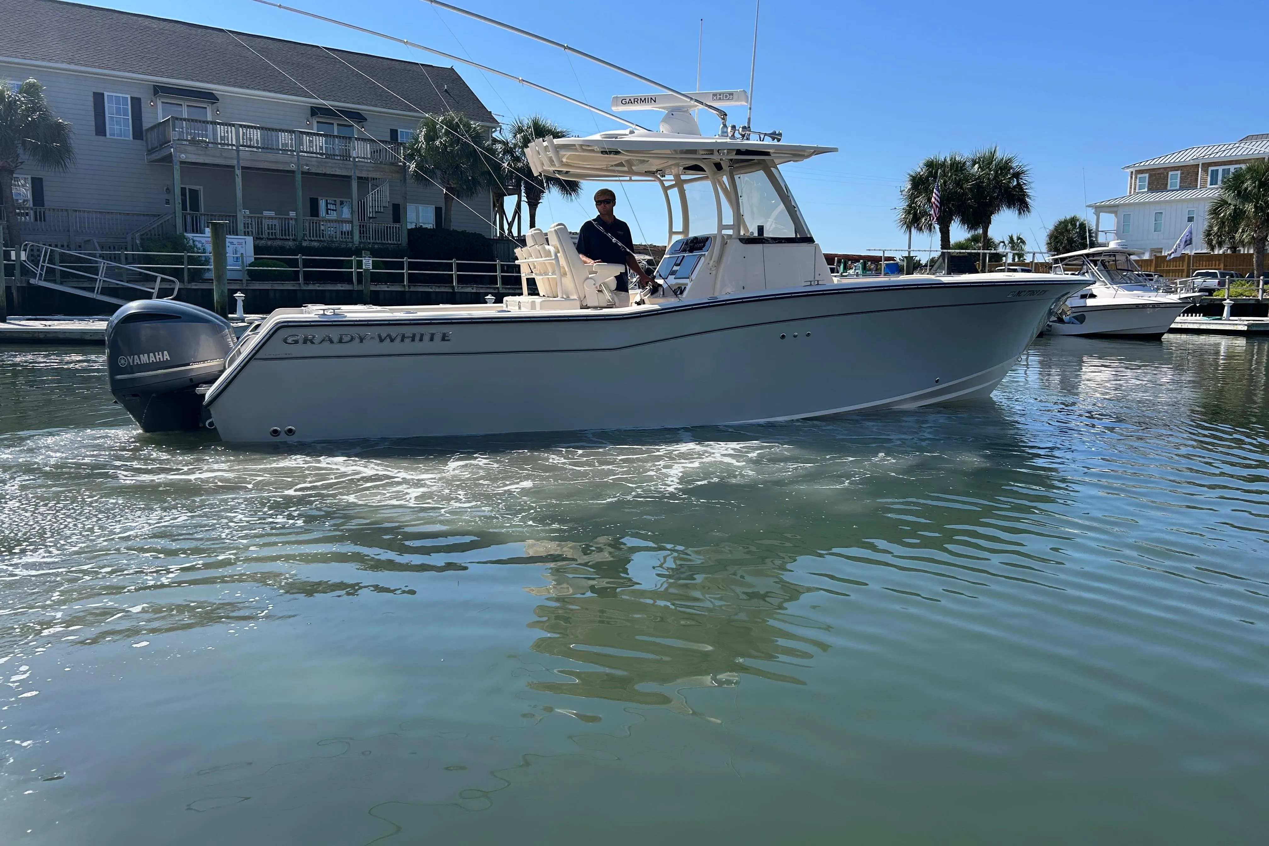 A remarkable center console boat that embodies both performance and style. With an overall length of 30 feet, this vessel is expertly crafted from durable fiberglass and features the innovative Sea-V2(TM) hull shape, ensuring a smooth and stable ride on the water. Powered by twin Yamaha F300 outboard engines, each delivering an impressive 300 horsepower, this boat is designed for exhilarating adventures. With only 303 hours of use, these engines promise reliability and power, complemented by stainless steel 3-blade propellers for enhanced efficiency. The Canyon 306 also offers a well-appointed head, ensuring comfort during your outings. Its thoughtful design and robust features make it an ideal choice for both fishing enthusiasts and leisure cruisers alike. Experience the perfect blend of performance and luxury with the Grady-White Canyon 306, ready to take you on unforgettable journeys.