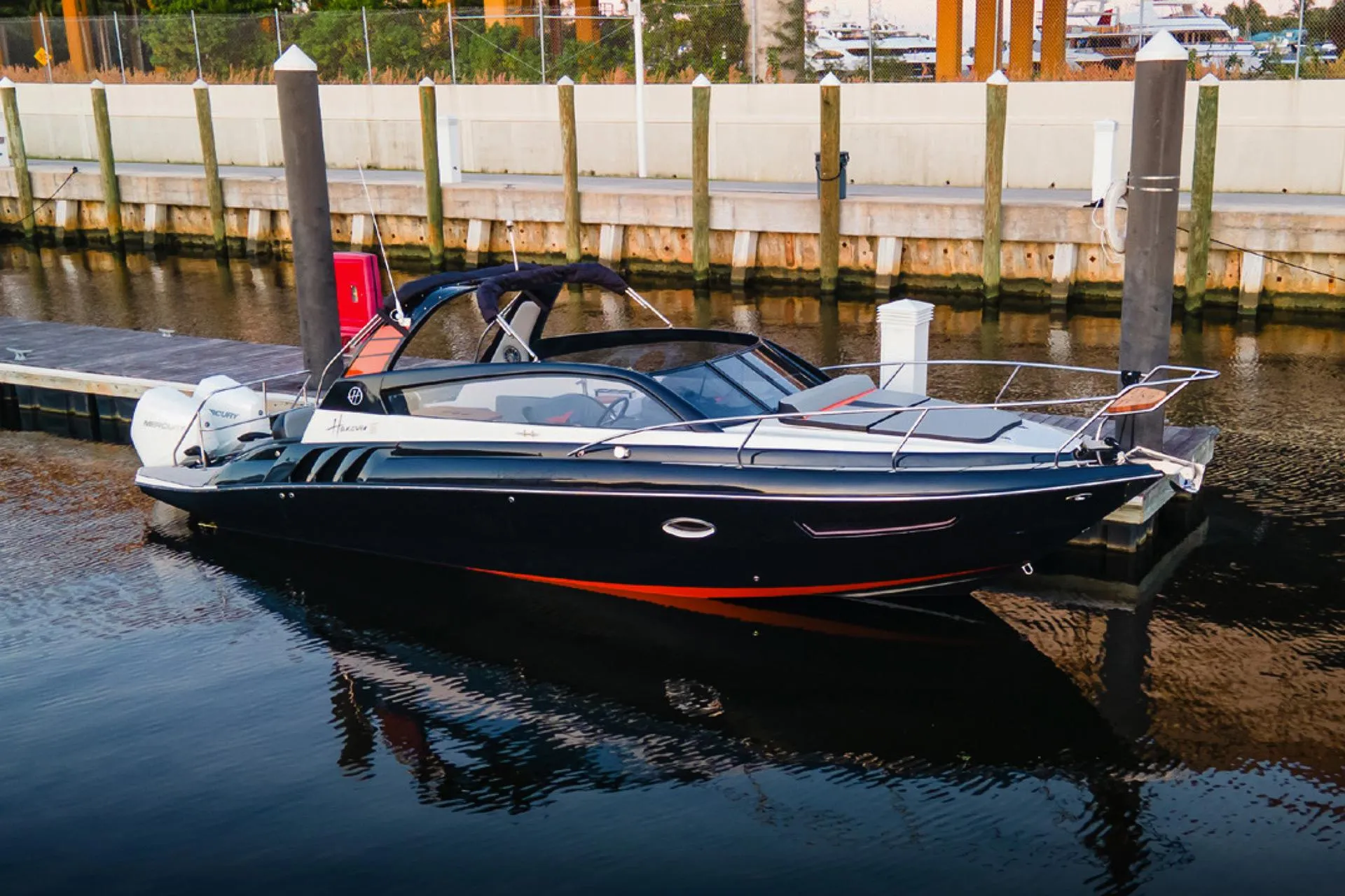 This 2024 Hanover 305 Batman Sport Edition goes beyond fully-loaded, with high-quality aftermarket upgrades that truly elevate the experience. Featuring a sleek black and orange paint scheme with grey, orange, and carbon fiber cushions, this boat has a stylish, standout look.