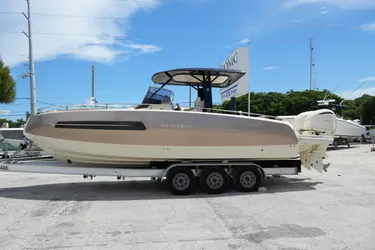 Powered by twin Yamaha 250s, it delivers thrilling acceleration and confident handling—perfect for coastal runs or island-hopping in style. The cockpit layout is versatile and social, with plush seating, a convertible sunpad, and teak finishes that elevate every moment onboard.