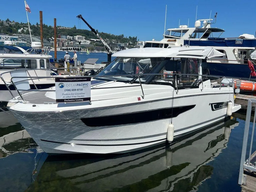 Unleash the adventure when you step aboard the coveted 2021 Jeanneau NC895 delivered to you with low engine hours and in immaculate condition. This isn't just a boat—it's your family’s ticket to endless fun and relaxation on the water. You and your loved ones cruising effortlessly in style through crystal-clear waters, soaking up the sun, spotting sea life, and making memories that will last a lifetime. With its safe and efficient design, boasting two cozy staterooms, the NC 895 is the ultimate family cruiser to realize all that Puget Sound and inland waters have to offer! But it's not just about comfort—it's about excitement too! Powered by exceptionally well-maintained twin Yamaha F200 outboards that combine for 400hp of power, this sporty beauty will have you flying across the waves in no time. With a spacious cockpit featuring a convertible lounge area and plenty of storage for all your gear, the fun never stops! Safety is a top priority, which is why the NC 895 is packed with clever features like recessed side decks and wrap-around railing, giving you peace of mind as you explore new horizons. And when it's time to relax, the interior is your oasis. With wrap-around windows and a sliding sunroof, you'll feel like you're one with nature as you enjoy plenty of natural light and fresh air. Plus, the fully functional galley including a gas cooktop, microwave and an onboard refrigerator, means you can whip up delicious meals and snacks whenever hunger strikes. But the real magic happens below deck, where you'll find two inviting staterooms, a modern head with shower, and plenty of thoughtful storage for those longer journeys.