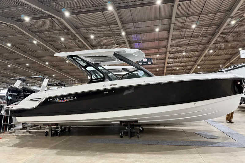 Introducing the stunning 2026 Monterey Elite 30 OB, a remarkable center console boat that embodies both style and performance. With an impressive overall length of 32.5 feet, this new vessel is designed for those who appreciate quality craftsmanship. The deep Vee hull, constructed from durable fiberglass, ensures a smooth and stable ride, making it perfect for both leisurely outings and adventurous excursions. Powered by twin Mercury 300 V8 outboard engines, this boat delivers an exhilarating 600 horsepower, providing exceptional speed and agility on the water. The Elite 30 OB is equipped with modern features that enhance your boating experience, including advanced joystick control for effortless maneuvering. Whether you're fishing, cruising, or entertaining, this boat promises to impress with its sleek design and powerful performance. Experience the thrill of the open water with the Monterey Elite 30 OB, where every journey becomes a memorable adventure.