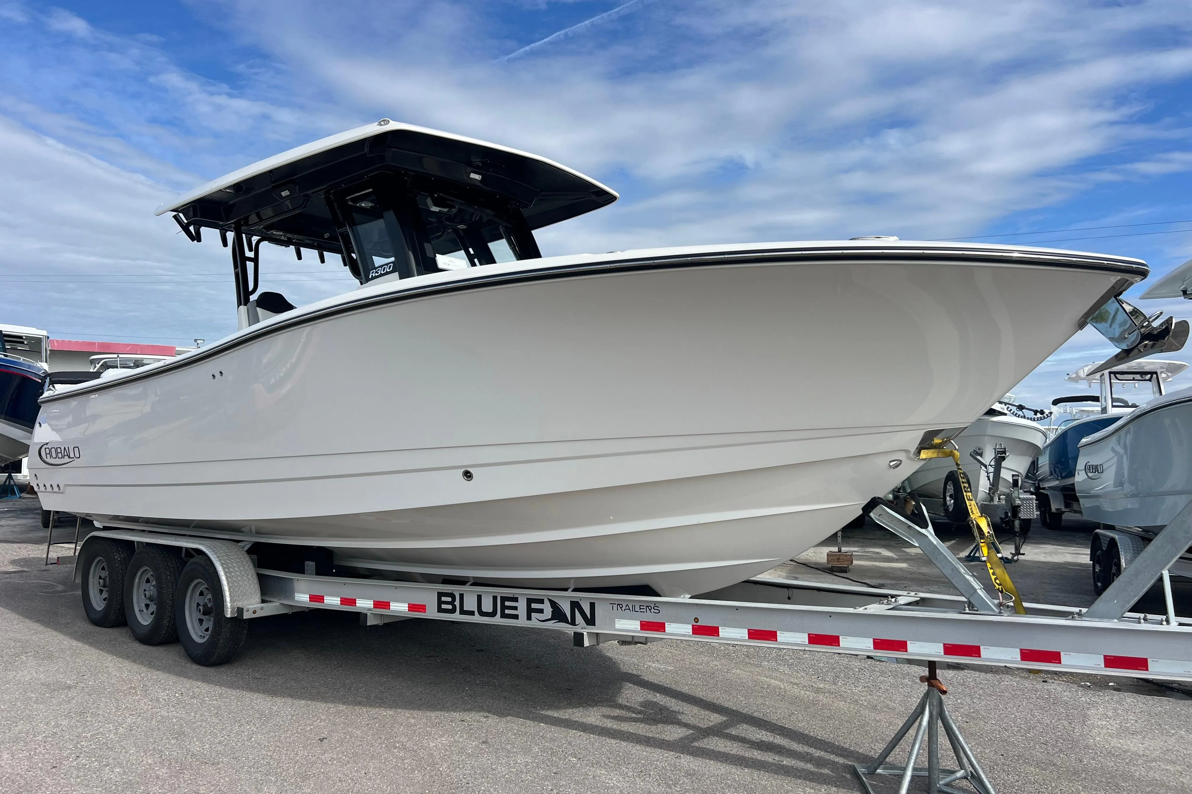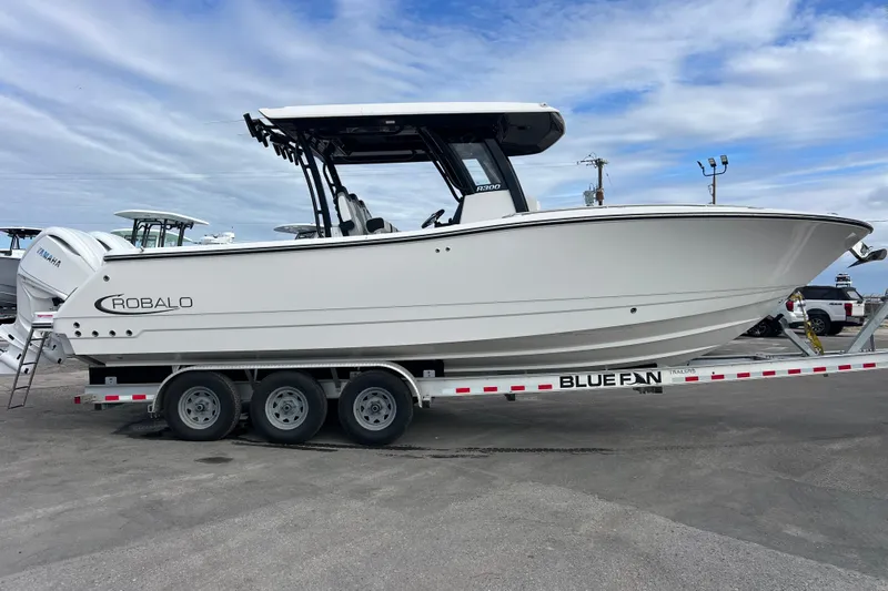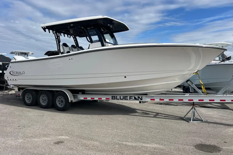 This is the R300 which is the New Model from Robalo. It is one of the most revolutionary 30 foot center consoles on the market! The Hull Design, Styling and comfortable Layout make it the most incredible blend of Fishability and Family Fun! They thought about everything. This is one of the only 30 foot boats out there that has three Captains Chairs at the helm. There is very comfortable seating everywhere and still plenty of room to walk around weather you have a bunch of people on the boat or going out fishing for the day. This R300 is powered by the new Yamaha 350 HP 4-Strokes giving this boat tremendous power for coming out of the hole and cruising strong. It also has the Yamaha Helm Master Joystick Control w/ Auto Pilot. The boat has a ton of standard features including a Shower that comes out of the back of the Hard Top! It is set up with Dual Simrad 16" Displays, VHF Radio, JL Audio Stereo, & Underwater Lighting. It is also equipped with the Lenco Pro Trim Tab System (Auto Trim Tabs). The head area is very large and easy to get into and has an Electric Head w/ Overboard Discharge. Other options include Bow Table w/ Cushion, Sea Deck Helm Mat, Stainless Drink/ Rod Holders, Tackle Storage, Transducer Upgrade to B175M & Polished Stainless Anchor.