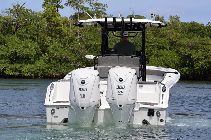 The 30 Gamefish is known for its large cockpit, serious fishing layout, and comfortable seating throughout. With multiple livewells, large fish boxes, and premium features, this boat is perfectly set up for offshore fishing or sandbar days with the family.