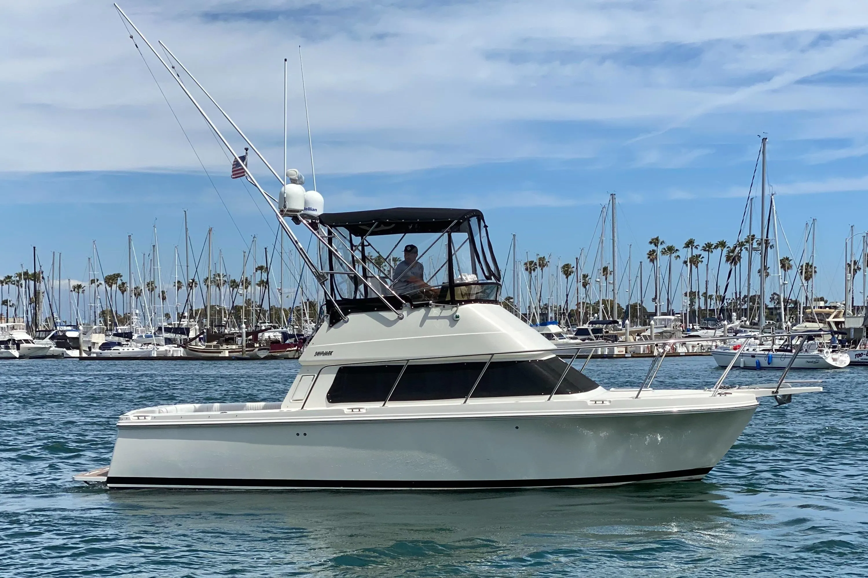 Low hour 315hp Yanmar engines, updated Simrad electronics package, Zipwake trim control system & custom cockpit bait tanks. These features along with a roomy comfortable interior make this a great family boat that can spend weekends at Catalina Island and then head offshore with the "Boys" to fish our local islands and offshore Banks. She is proven boat.