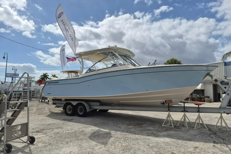 Introducing the 2026 Grady-White Freedom 307, a stunning dual console boat that epitomizes modern craftsmanship and performance. With an overall length of 30 feet, this vessel is designed for both comfort and functionality. Its fiberglass hull features the innovative Sea-V2(TM) shape, ensuring a smooth and stable ride on the water. Powered by two reliable Yamaha outboard engines, this boat promises an exhilarating experience, perfect for cruising or fishing adventures. The Freedom 307 is equipped with advanced features, including joystick control for effortless maneuvering. The spacious layout allows for ample seating, making it ideal for entertaining family and friends. This new model combines sleek aesthetics with practical design, ensuring that every outing is enjoyable and memorable. Experience the perfect blend of style and performance with the Grady-White Freedom 307, where every detail is crafted for your ultimate boating pleasure.