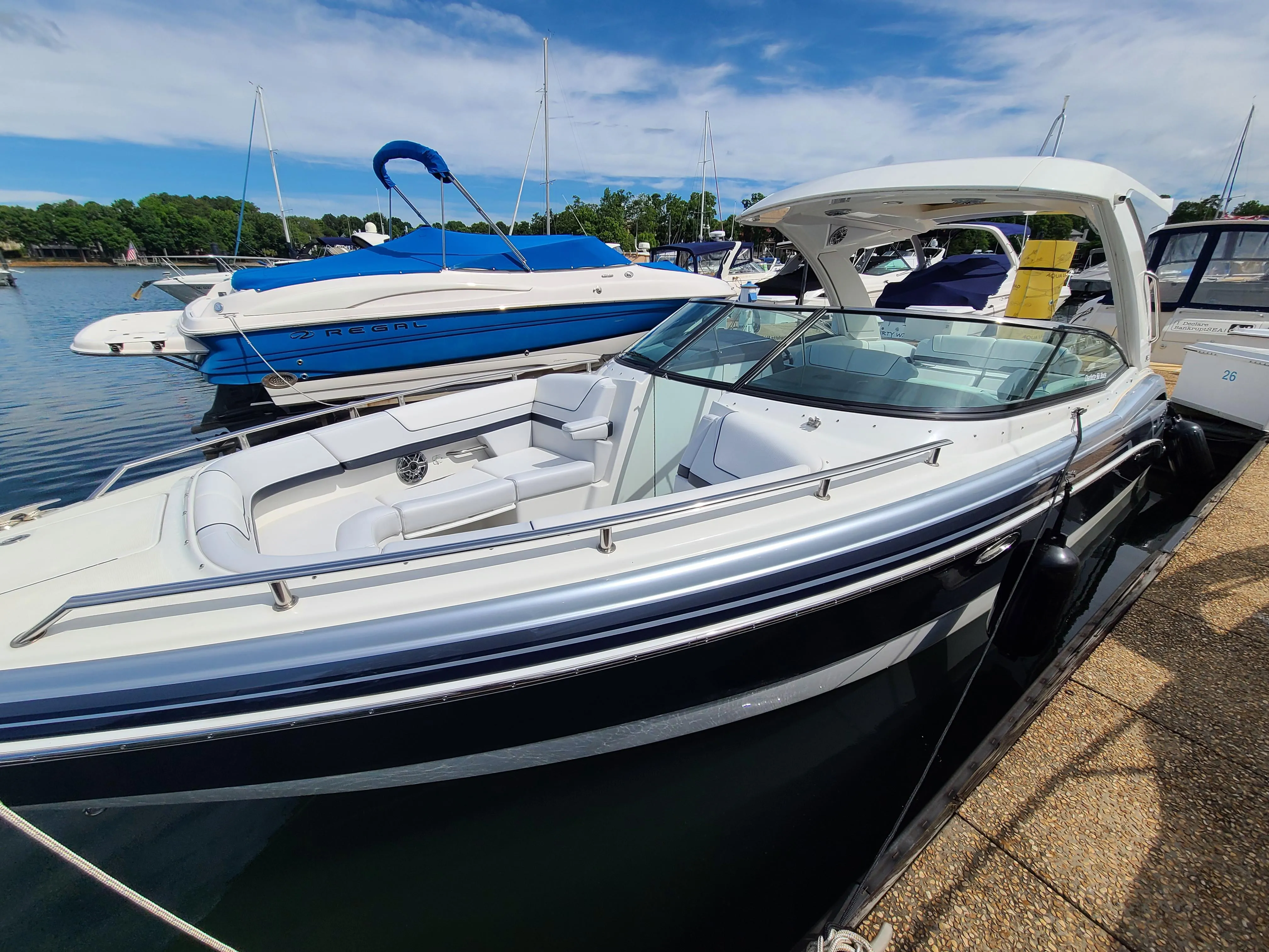 As Formulas biggest bowrider most owners use this boat for lounging and entertaining, and the 310 Bowrider is set in that regard. The boat is equipped with two cockpit tables, and a wet bar to port with a covered sink and it holds the optional pull-out Isotherm deck refrigerator! There’s also built-in cooler below one of the bow seat cushions for extra drinks and such. The head compartment to port has 4 feet, 6 inches of headroom and is spacious in every way with full cabinetry, countertop, sink and window!  From the extended 4 foot swim deck to this yacht's optional fiberglass hardtop with skylight laced with JL component speakers this vessel is luxury at its finest.