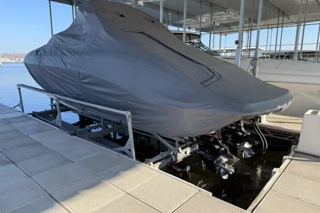 Lift kept under a mooring cover & covered dock this boat has only serviced by  Formula Boats of Missouri a certified Mercruiser dealer.
