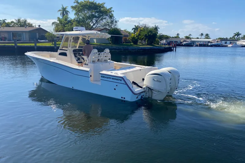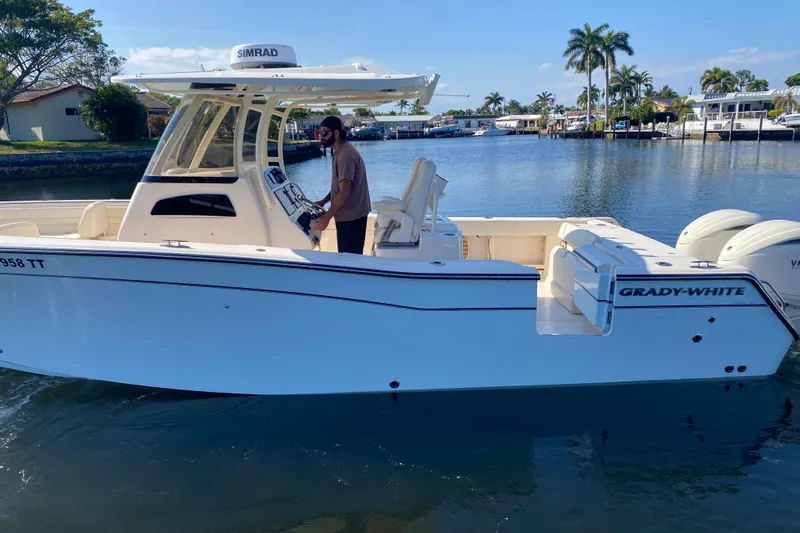 The immaculate 2024 Grady-White Canyon 306 was sold by our marina when new and runs perfectly. It shows in great overall condition and has been regularly detailed. Powered by twin Yamaha F300 outboards with only 67.6 hours with DES & Full Maneuverability. Options and upgrades on this boat include: Helm-Master Joystick control, Yamaha Auto Pilot, Bow thruster, Bennett Trim Tabs, Whole Hull & Underside of T-Top in Ocean Mist Color, Dual Simrad NSS16 EVO3S 16" MFDs with Sonar C-Map, Simrad/Yamaha 6YG Gateway Kit, Simrad 24" Halo Dome Radar, Lowrance SS 175L 20 Degree Thru hull Transducer, Simrad VHF RS40 Radio w/ AIS, Ivory Bow Shade & Fusion Stereo.