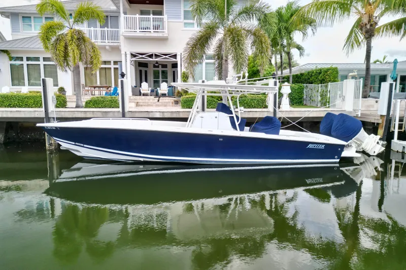 Introducing the 2007 Jupiter 31 Center Console, a remarkable vessel that combines performance and style. With an overall length of 31.79 feet, this boat features a robust fiberglass hull designed in a deep Vee shape, ensuring stability and a smooth ride even in choppy waters. re-powered by a powerful by twin Suzuki DF300 outboard engine w/ 565 hrs., delivering 300 horsepower, it achieves a cruising speed of 30 knots and a maximum hull speed of 50 knots, making it perfect for thrilling adventures on the water. With a range of 320 miles, this boat is ideal for extended excursions. Its thoughtful design includes essential equipment for a seamless experience. Whether you're fishing, cruising, or enjoying a day on the water, the Jupiter 31 is built to impress with its performance and reliability. This used model is a fantastic opportunity for those seeking a high-quality center console boat that stands out in both capability and craftsmanship.