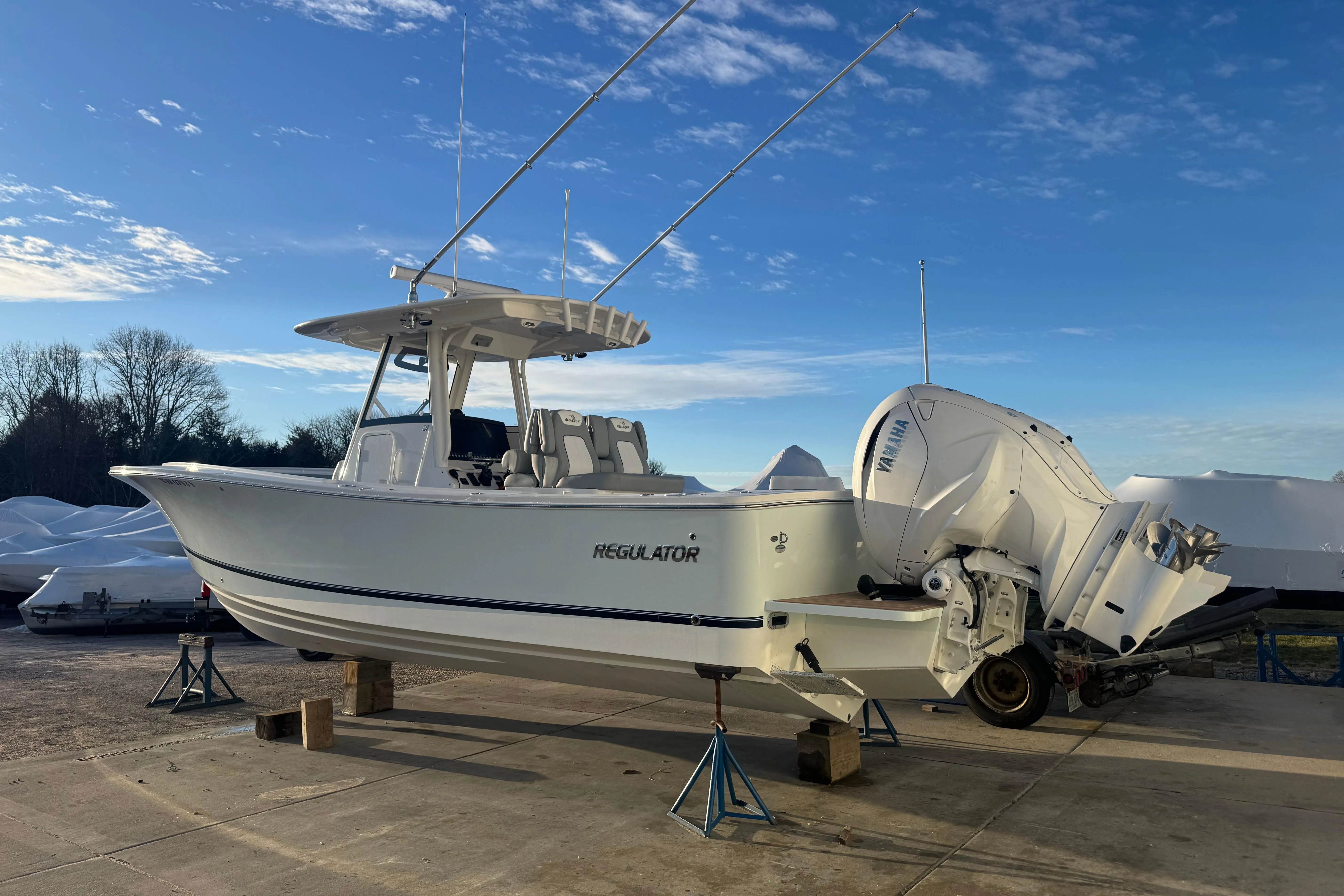 Up for sale is a clean low hour 2022 Regulator 31. Powered Twin White Yamaha XF425 4-Stroke Engines with only 185 Hours equipped with DES Tilt Helm, DEC, and EX Autopilot. Factory transferrable motor warranties good to 11/23/2026. This one owner boat has been well cared for with all dealership factory records on file. Currently on display here at Ocean House Marina.