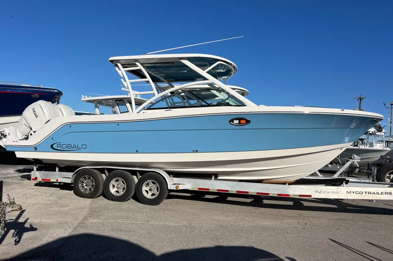 This is a brand new Robalo 317 Dual Console and it is powered by the new Yamaha 350 HP 4-Strokes providing incredible performance and reliability. These are also set up with the Yamaha Helm Master Joystick & Auto Pilot. The layout in this boat is incredible! There are so many well thought out designs including the rear Sun Lounge which has two backrests that move around to allow you to create the perfect position for you. It also has a Sure Shade that deploys out of the Hard Top to give you excellent sun coverage while lounging there. This boat also has the optional Forward Fly Shade for the Bow area. There is a nice berth/ closet area on the port side which makes for immense storage or a place to get out of the weather if it gets bad. There is an Electric Head on the Starboard side which is very easy to get in and out of. It has an awesome electronics package including a Garmin 16" Screen, VHF Radio, JL Audio Stereo, and Auto Pilot. It has a Live well, Side Dive Door and a great Fish Box / cooler. All this combined makes for the perfect boat for entertaining family and friends or offshore fishing! Other Options include, Atlas Blue Hull Side Color, Yamaha Helm Master Joystick, Bow & Cockpit Cover, Cockpit Gas Grill, Forward Fly Canvas Shade, Underwater Lighting, Lenco Pro Trim Tab System, Overboard Discharge, Stainless Drink / Rod Holders, Wetbar, Polished Stainless Anchor.
