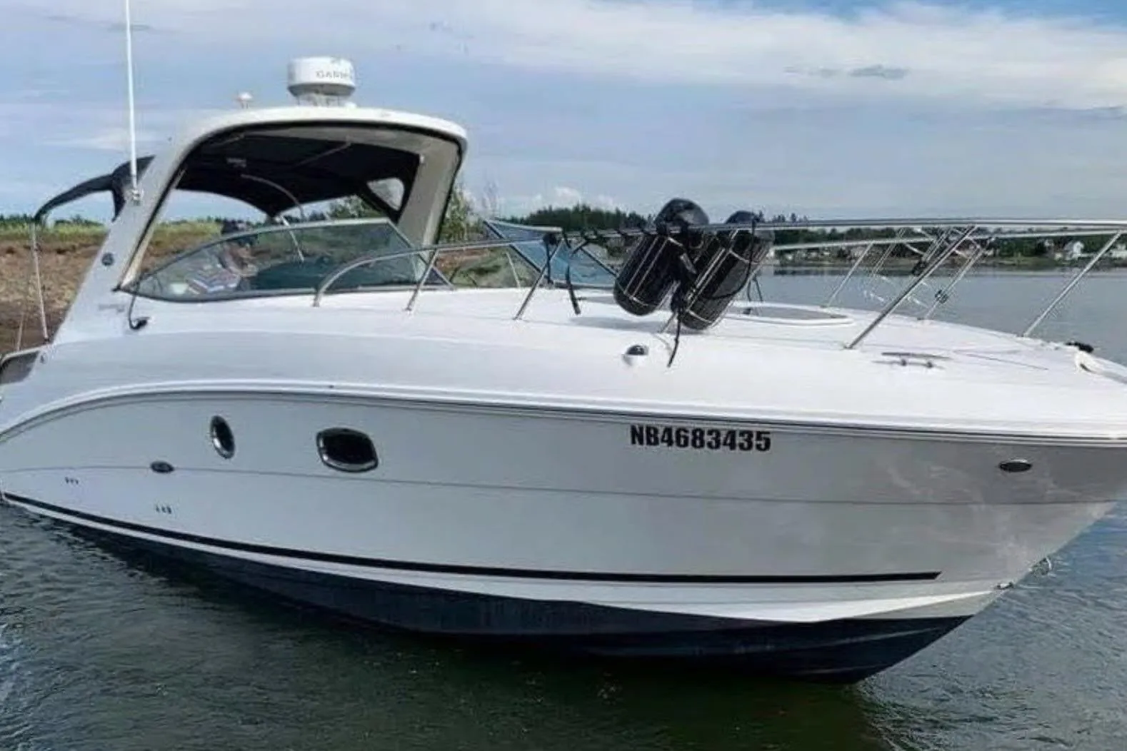 Twin 2011 Mercruiser 300hp inboard fresh water cooled gas engines (387 hours at time of listing); cruising speed 22 knots; maximum speed 30 knots; 125 gallon fuel capacity in a stainless steel tank; fixed propellers; oil/water/temp alarm; bilge blower; fume detector; trim tabs; synchronizer; Axius Intuitive joystick controls (Bravo III outdrives).