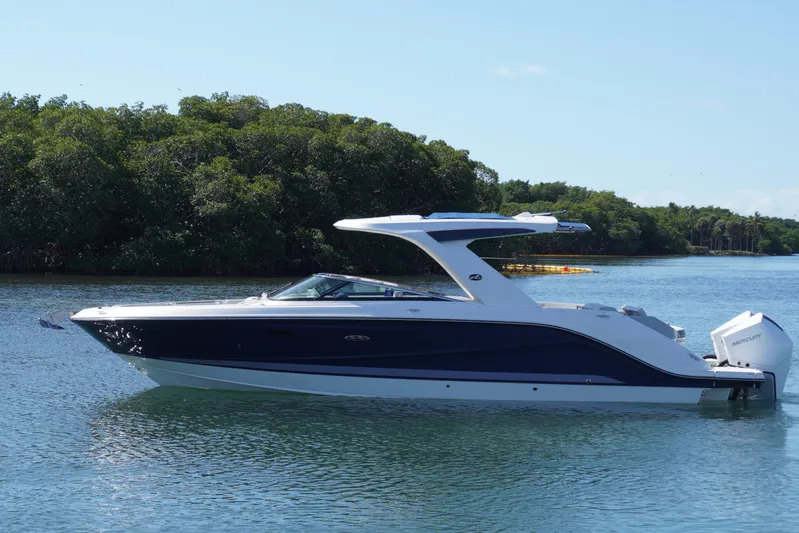 This 2020 Sea Ray 310 SLX OB presents a great opportunity to acquire a meticulously maintained and tastefully updated example of one of Sea Ray’s most sought-after outboard models. Finished in an elegant dark blue hull with light grey upholstery, she offers a great platform for cruising and entertaining. Regularly serviced and always upgraded, this vessel is ready for its new owner.