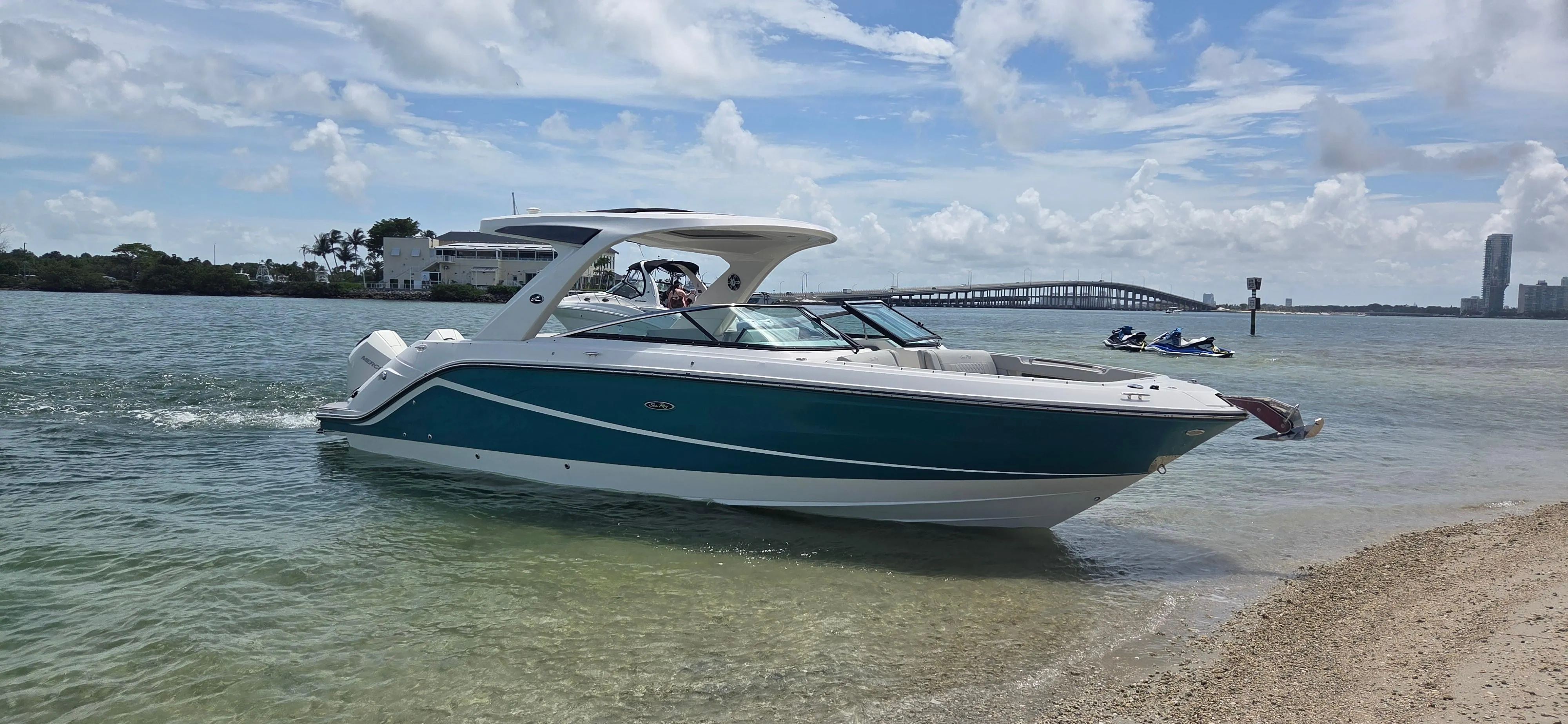 The Sea Ray SLX 310 Outboard features premium Mercury® Verado® outboard power. Enjoy the incredible noise-quashing benefits of Quiet Ride™ and select from other available Next Wave™ innovations including Dynamic Running Surface, for unsurpassed stability and performance, and joystick piloting technology, for effortless handling and docking ease. A host of intelligent features combine in a sleek, stylish package that exceeds all expectations.