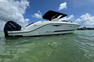 Experience the thrill of luxury the magnificent 2017 Sea Ray SLX 310 OB Offers. This beautiful vessel is designed for those seeking adventure and elegance, featuring two powerful Mercury 300 HP engines that delivers an exhilarating ride. The sleek lines and craftsmanship on this Sea Ray ensures you glide effortlessly across the water.