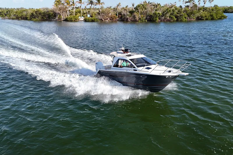 The S-250 C comes fully equipped to cruise and play. Standard features include autopilot, LiFePO4 batteries, air conditioning/reverse cycle heat, Garmin 8612xsv GPS chartplotter with sonar, color Yamaha engine display, bow and stern cameras, VHF, docking lights, premium Bluetooth stereo system, sport racks, built-in trailer lights, and much more.