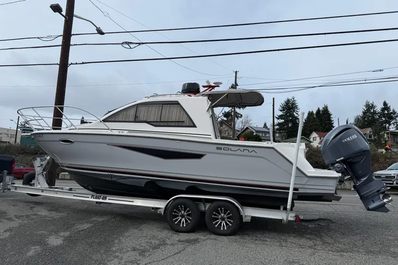 Why buy new when you can buy this "like new" 2024 Solara S-250 Coupe (S-250 C) that has a Yamaha 300hp outboard with only 275 hours and it also has a tandem axle trailer! This 2024 Solara S-250 C is a 1 owner boat that was bought new in the spring of 2024, stored on the trailer indoors since new in Arizona, before the owner brought it up here to sell. They are only selling as they are buying a larger boat.