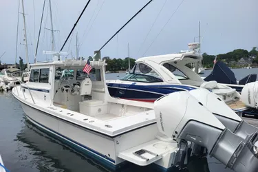 Introducing the 2023 Steiger Craft 31 Fisherman, a remarkable pilothouse boat designed for both performance and comfort. With an overall length of 31 feet, this vessel features a robust fiberglass hull shaped in a Deep Vee, ensuring excellent stability and handling on the water. Powered by twin Mercury Verado V8 outboard engines, each delivering an impressive 300 horsepower, this boat promises exhilarating speed and reliability. The engines are equipped with stainless steel 3-blade propellers, enhancing efficiency and performance. Inside, the 31 Fisherman offers a cozy cabin and a well-appointed head, making it ideal for extended trips. The electric windlass adds convenience, allowing for effortless anchoring. This boat is perfect for fishing enthusiasts and those seeking adventure on the open water, combining modern features with the classic craftsmanship Steiger Craft is known for. Experience the thrill of the sea with this exceptional vessel!