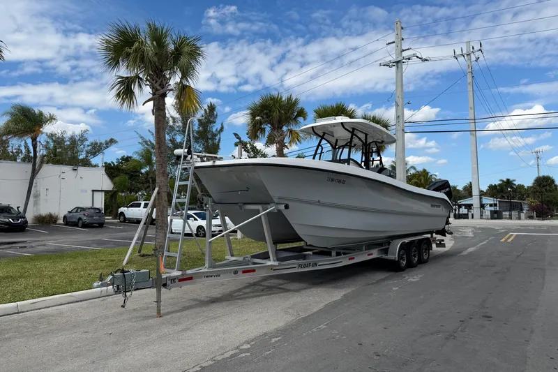 This Twin Vee 310 shows well with trailer included. No bottom paint