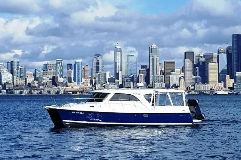 One very caring owner that worked with the factory during its construction and had a bunch of custom work done including the hardtop over the back deck with the enclosure-Moored under cover its entire life-1144 hours running on Volvo D3 diesel straight inboard-Over $50,000 just invested in upgrades and maintenance-New Turbo-new injectors-new riser-new bottom paint-receipts available-Bow and stern thrusters-Radar-GPS Plotter-Autopilot-Inverter-Anchor windlass w/2 sets of chain & line-Dinghy-Upgraded to Lithium batteries-Northwest composite built boat with 70% more roll stability and 50% less carbon impact-It’s top of the line-Current owners will spend time with new owners going over all the upgrades-