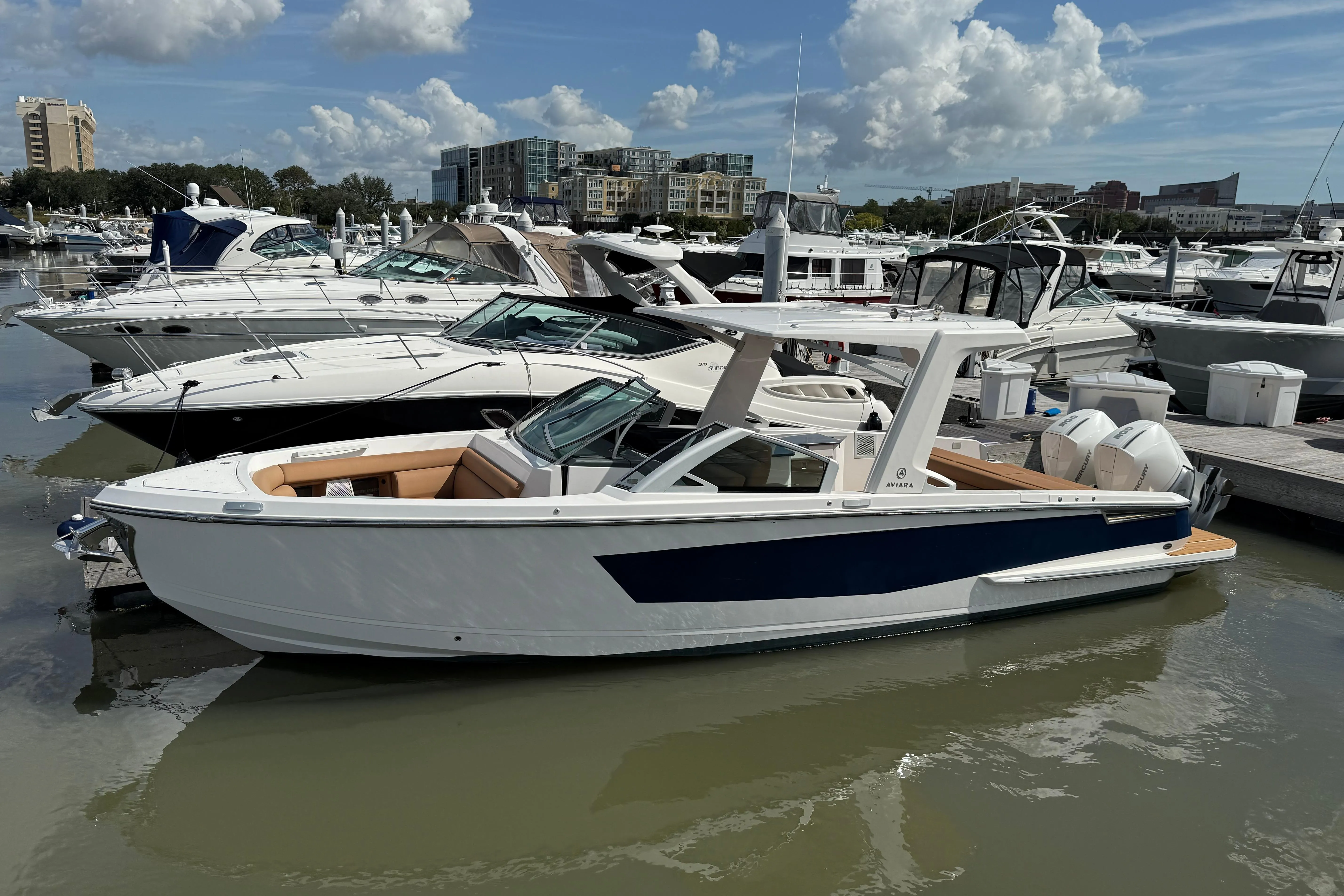 MAJOR PRICE REDUCTION JANUARY 2026. Don't miss this extremely clean and professionally maintained Aviara 32 Outboard. The Aviara 32 Outboard is loaded with innovative features including abundant seating, comfortable SeaDek flooring, a 12" Garmin GPS/Chartplotter, large head and a fiberglass hardtop. Power is provided by reliable twin Mercury 300HP Outboards covered under TRANSFERRABLE Mercury Platinum Product Protection until August 2026. Service records available with accepted offer. Vessel is easy to see, located only twenty minutes from the Charleston International Airport. Additional features include;