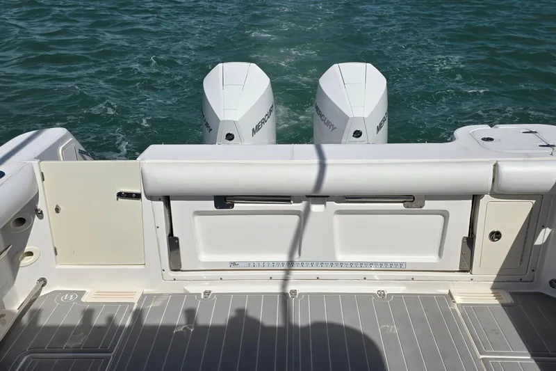 • Cockpit: Large, 58-square-foot space equipped with fish boxes, a livewell, and a bait prep station.