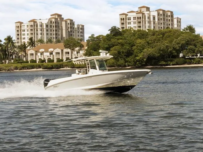 • Freshwater system with 40 gal tank, sink in console, transom shower, prep station and anchor washdown