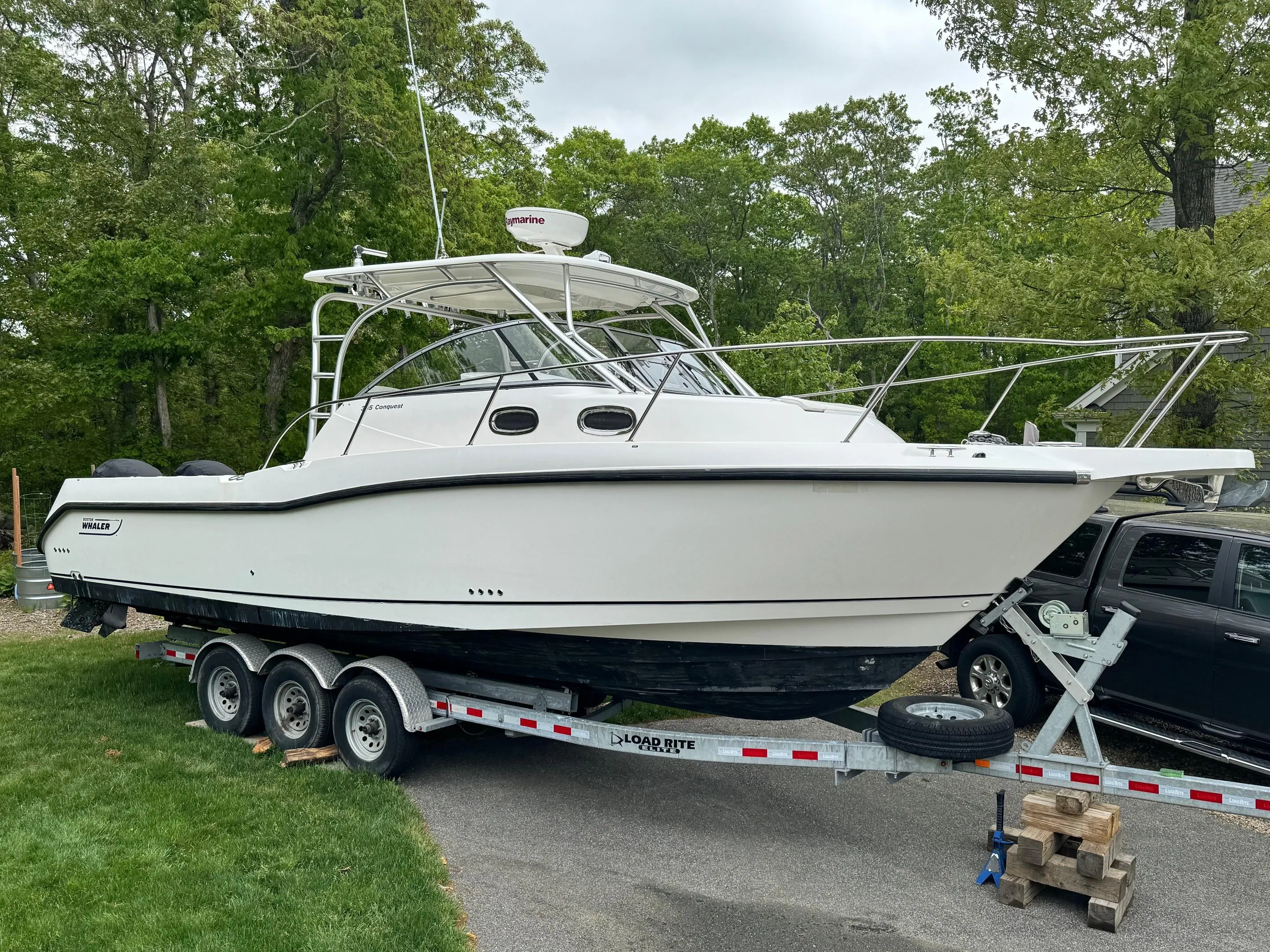 2011 Boston Whaler 305 Conquest with twin Mercury 300 Verados. 362 meticulously maintained hours on the engines. Digital throttles with power steering. Panda Diesel Generator with 377 hours. Very Clean boat with a full set of Curtains and cushions, all in excellent condition. Engines covers are being painted. The boat sits on a big Load Rite Elite triple axle bunk trailer. You will not find a cleaner, well maintained Whaler like this one.