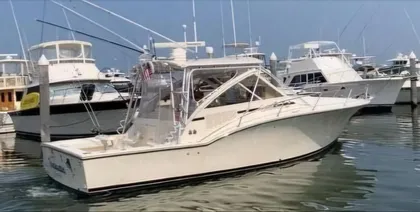 This popular 32' Carolina Classic is well equipped with excellent power. Powered with a pair of the very reliable Cummins 6BTA5.9L with only 1500 hours. The 1000 hour service has been completed! With a battle ready cockpit and well accommodating interior allows for comfortable trips to the canyon and weekend getaways. A nice electronics package with Glendinning controls at the helm allows you to navigate and find fish efficiently.