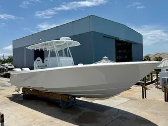 This 32 ST is barely used, the owner is building a larger Contender. This is a great opportunity to get into a boat that is almost new and at a very good price! This boat is powered by new twin Yamaha 350 HP 4-Strokes with only 65 hours on Them. There are Yamaha Warranties on them till 6/2/2030!! It also has the Yamaha Helm Master Joystick with Auto Pilot. This boat was designed to be able to fish hard and have some comfortable seating so you can hit the sand bar as well. This boat has the optional forward bow seating with Forward Facing Backrests. It also has the Coffin Box Lounge in front of the console. The helm seating is very comfortable, it has the Sporty Llebrock Helm Chairs on electric sliders. The boat is set up with Garmin Electronics, (2) 9219 XSV's) w/ the GSD 25 Sonar module and B275LHW Transducer. Other Electronics include Radar, Under Gunnell Lighting (white), and Big Stereo. It has the Empire Bus Digital Switching so all the switches for the boat operate thru the Garmin Screens and there are rubber switches for redundancy or in case you do not want to turn the screens on. Below the tackle drawer is a slide out Frigid Rigid Ice Chest. The Electric Head is mounted on a slider to save space in the console. The hull sides and Bottom color are Whisper Grey. The Hard Top is huge, it is the Extra Large fiberglass hard top with multi color changing LED lighting. The list of options is below...