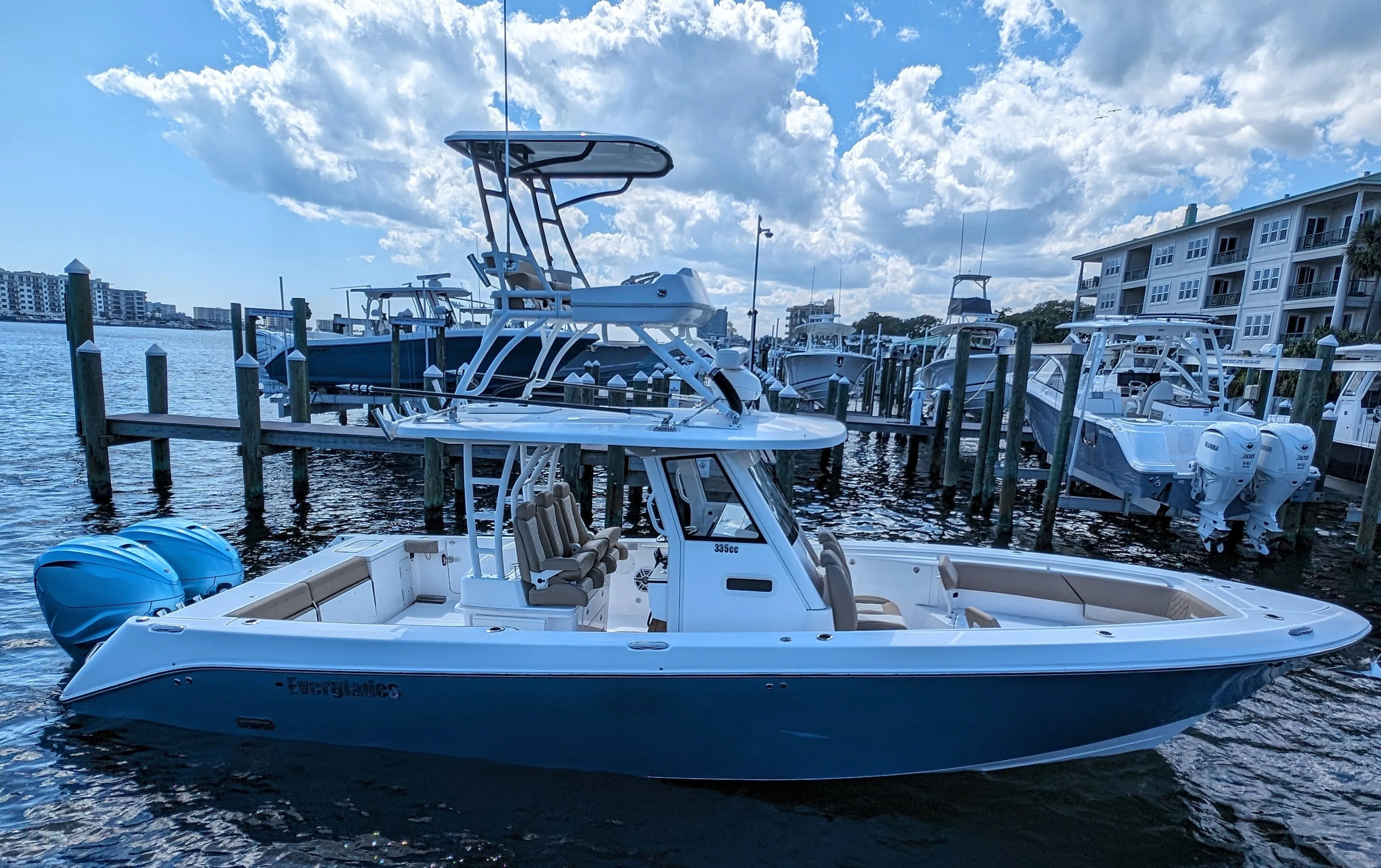 Easy to show in Destin, Florida. The Everglades 335 is perfect for the family day and the sand bar or a day of offshore hardcore fishing.