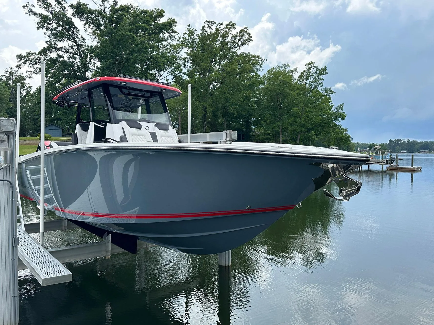 This fresh water only 2024 Fountain 32 NX is powered by twin Mercury 400 hp V-10's with only 6 hours!  She is loaded with twin Garmin MFD's, Joystick, Fusion 770 paired with JL Audio sound system, windlass, plumbed head, ample seating, large transom live well, Reverso integrated engine flushing system,  and much more!  Don't miss this opportunity on a like new boat for a great price!